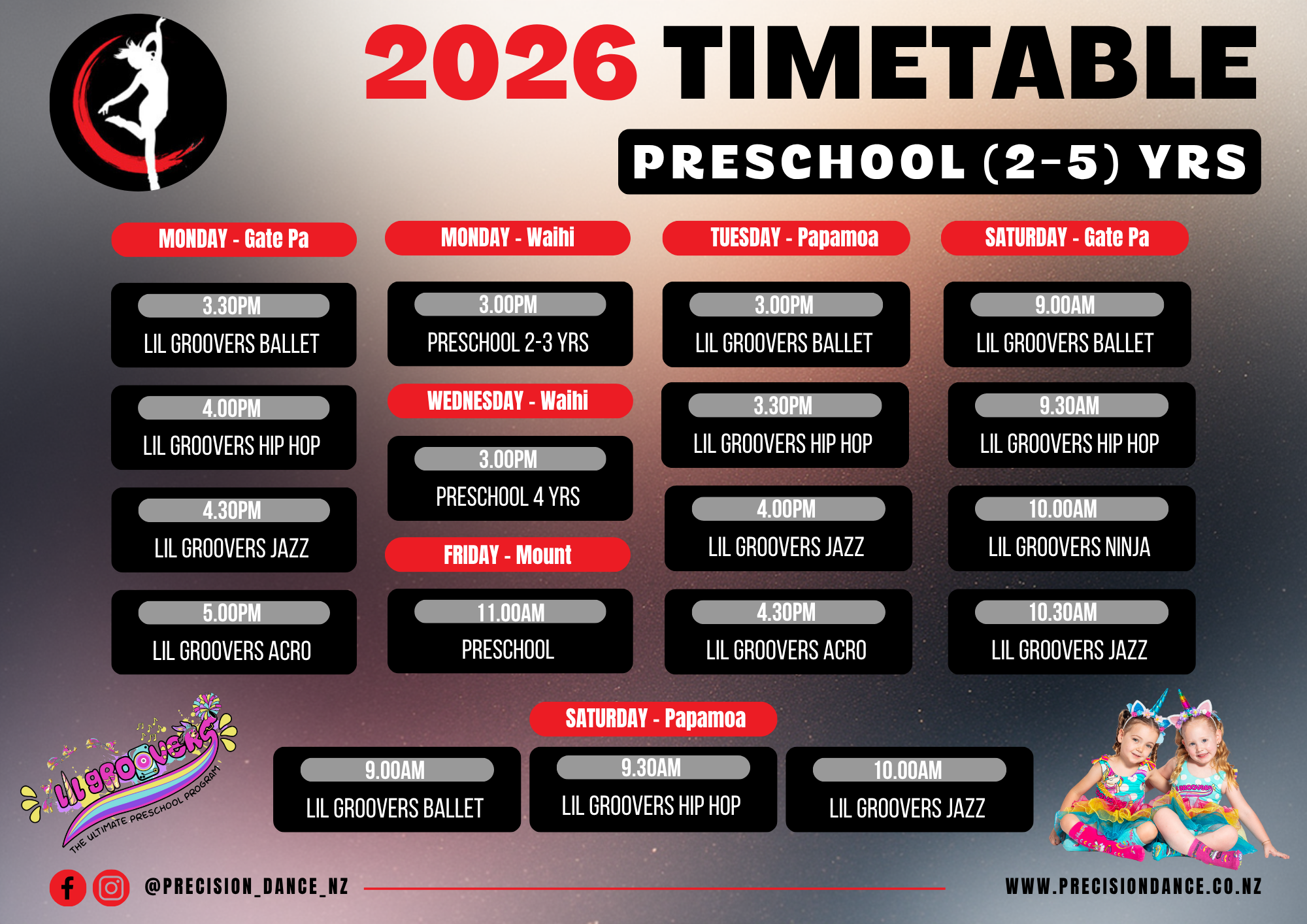 Our Mount Maunganui & Waihi venues run a different preschool program - Please contact us to find out more